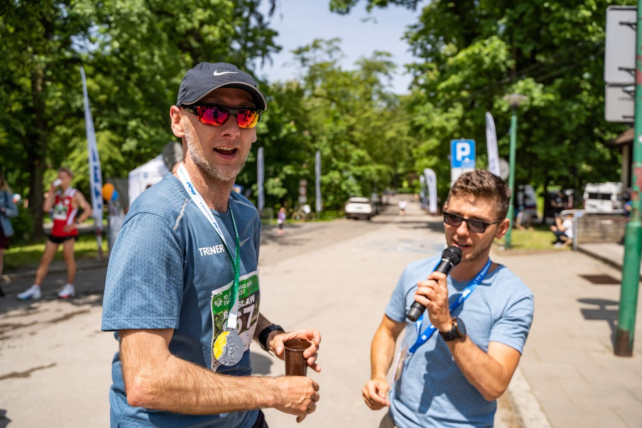Pogoda do biegania w Swoszowicach dopisała. Było idealnie. Ponadto dzięki przedpołudniowych godzinach startów można była znaleźć na trasie nieco cienia. Natomiast tam gdzie go brakowało z pomocą przyszły kurtyny wodne oraz punkty nawodnienia💦💦