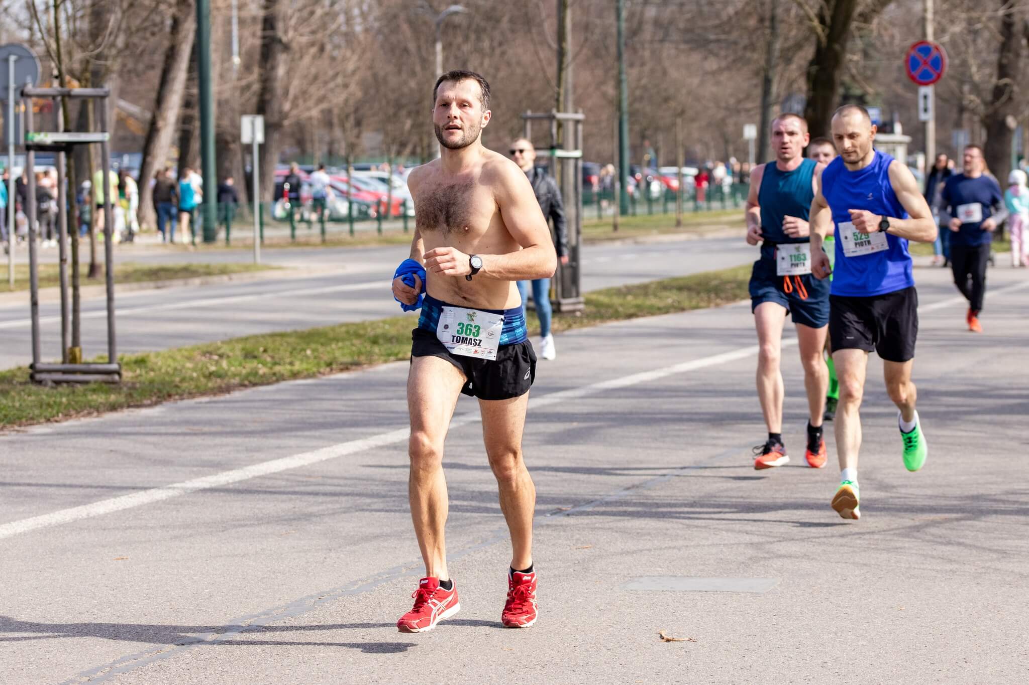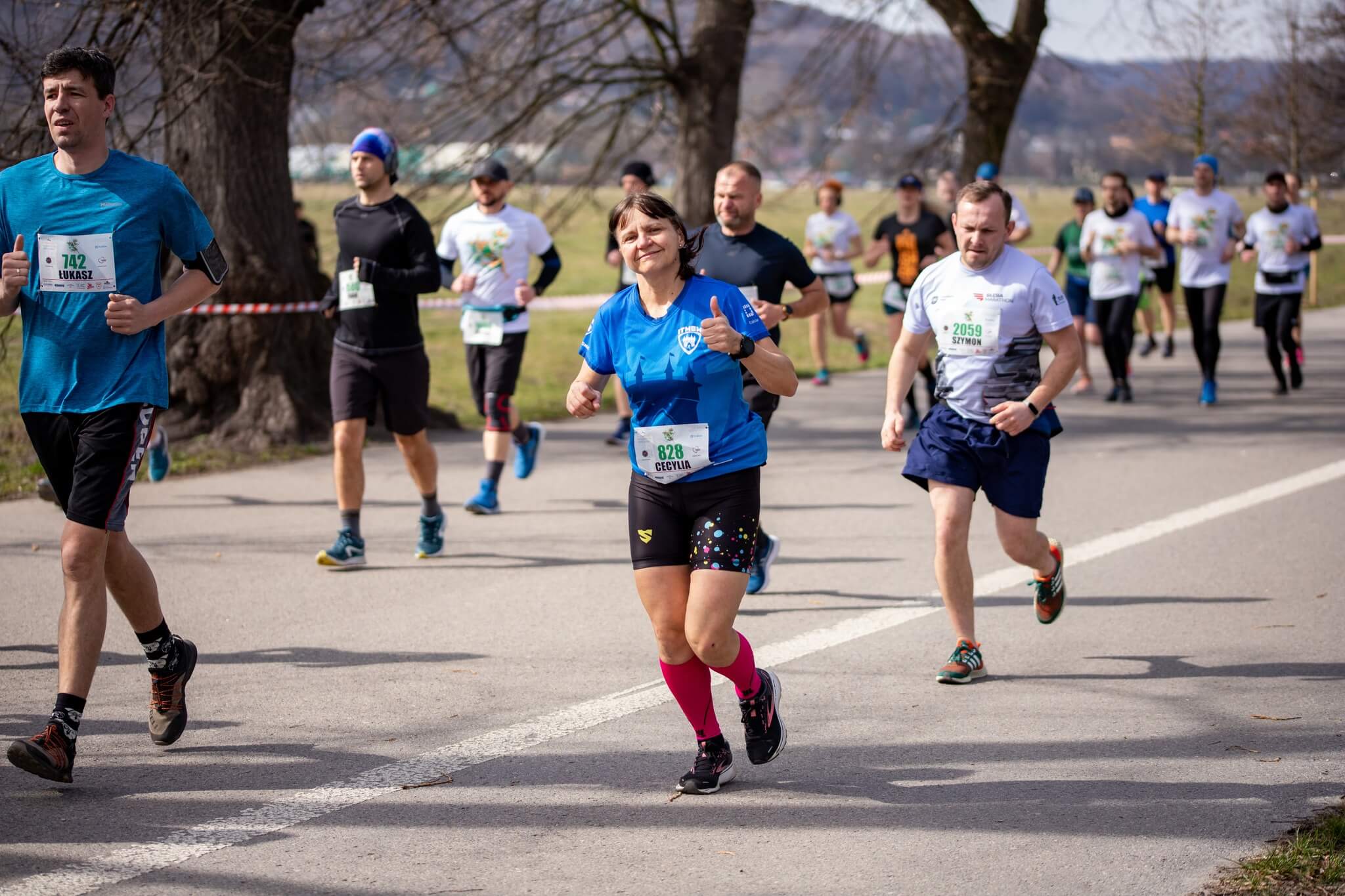 Ale to nie wszystko, bo oprócz przywoływania wiosny także pięknie pobiegaliśmy. Oj długo wyczekiwane słońce dało o sobie poznać. A to już najlepiej było widać po radykalnej zmianie outfitu biegaczy – przyzwyczajonych głównie do wieczornego trenowania w temperaturach od o do 5 st C. Najbardziej tę zmianę ubioru widać chyba u naszego Tomka Dobrzańskiego 😅😁 co już zobaczycie poniżej na zdjęciach od Mateusz Gałązka Fotografia.