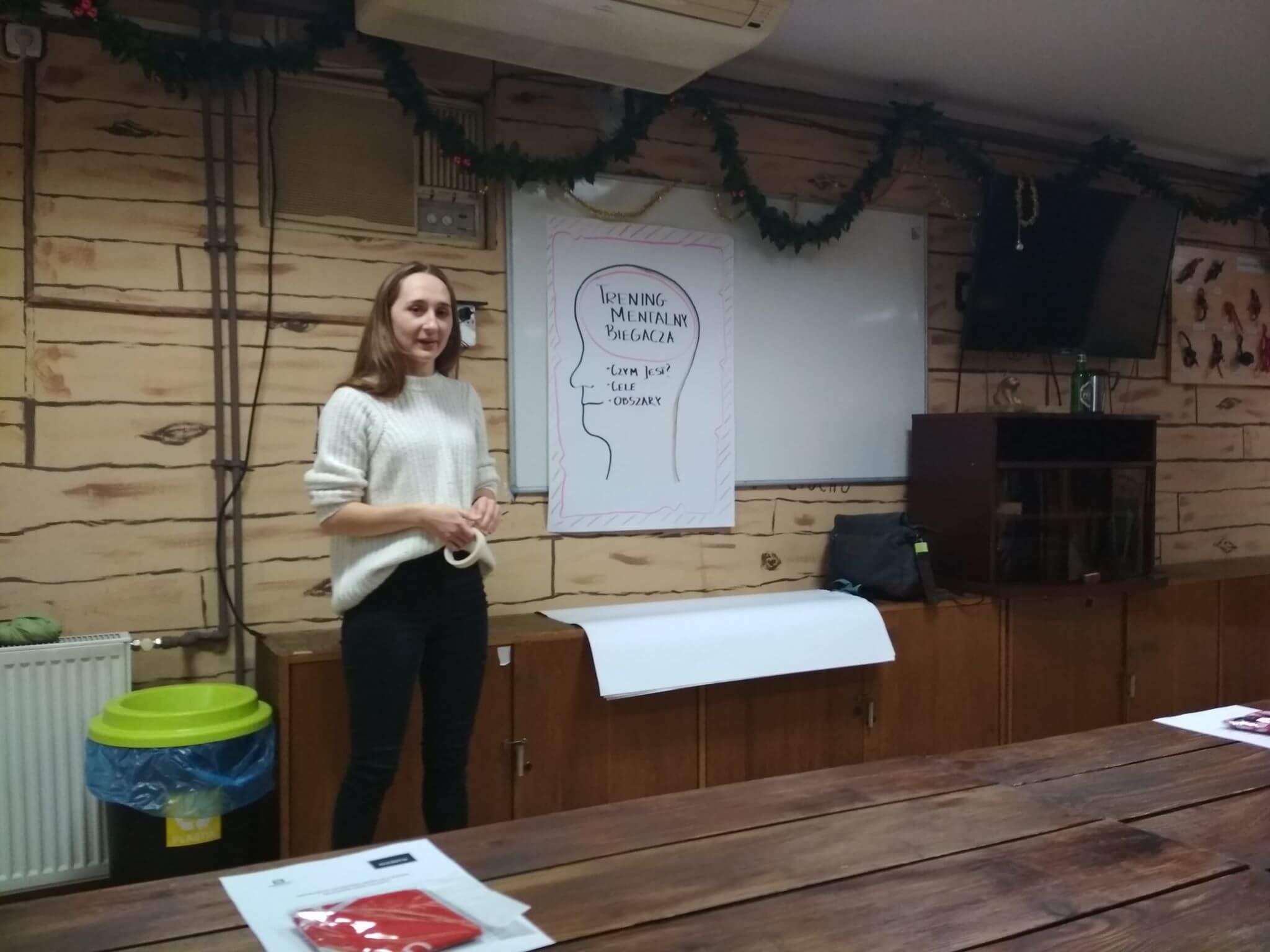 Przedstawione zostały nam między innymi zasady prowadzenia wewnętrznego dialogu, wzmacniania pozytywnych emocji i wygaszania tych negatywnych. Rozmawialiśmy również o tym co motywuje biegaczy w osiąganiu postawionych sobie celów oraz jak je wyznaczać zgodnie z zasadą SMART (cel, który jest: specyficzny, mierzalny, osiągalny, istotny oraz określony w czasie). Chcąc poprawić swoje wyniki warto oprócz regularnych treningów biegowych skupić się na treningu mentalnym, który ma realny wpływ na ociąganie założonych celów.